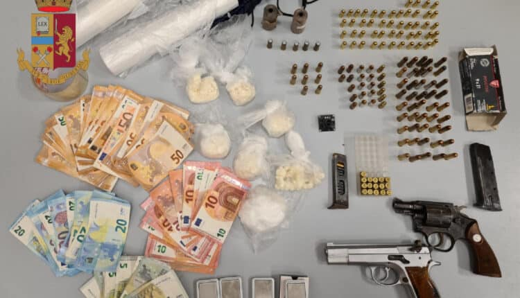 Successivamente i poliziotti hanno controllato anche l’auto dove hanno trovato 6 buste con circa 189 grammi di crack, un’altra busta contenente circa 63 grammi di cocaina, 145 cartucce di vario calibro, altre 5 cartucce a salve cal.357 e 2 pistole, di cui una con matricola abrasa e l’altra risultata smarrita nel 2017.