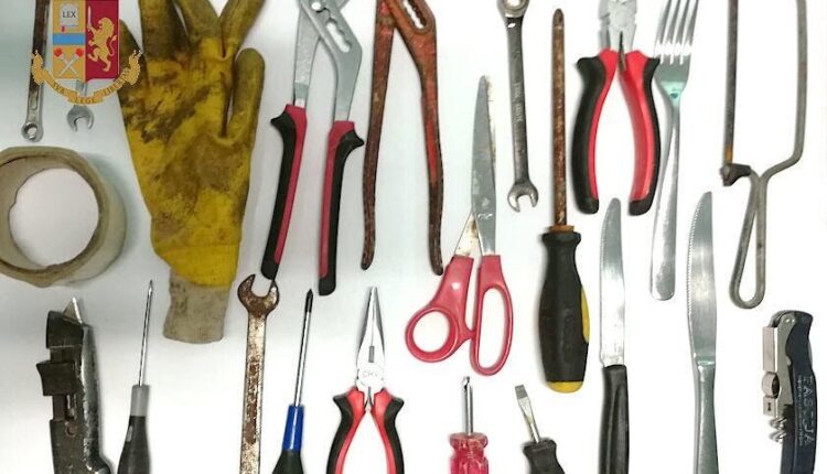 All’interno di una busta termica, riposta nel cestino della bici condotta dal 39enne, persona nota alle forze dell’ordine, i poliziotti hanno rinvenuto e sequestrato un guanto da lavoro, vari attrezzi, utensili, coltelli da cucina e un cutter.