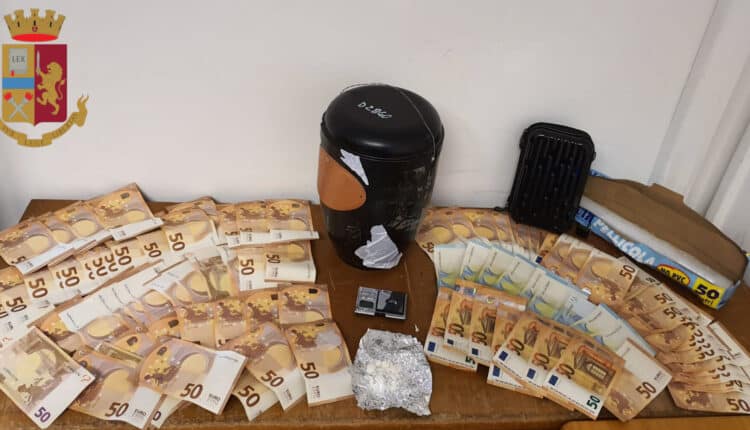 All’interno della pertinenza, meticolosamente nascosti in un astuccio, sono stati rinvenuti 4680 Euro in contanti oltre ad un bilancino di precisione e materiale per il confezionamento.