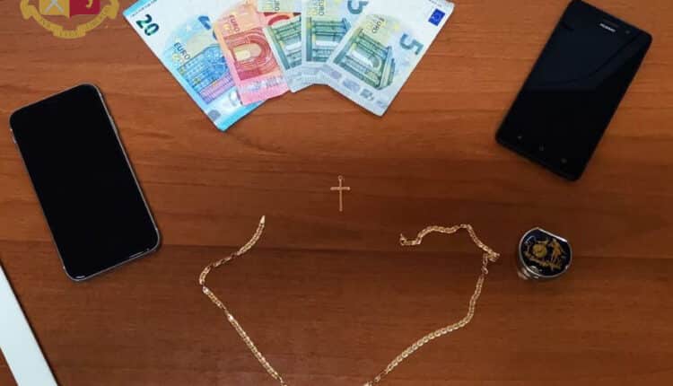 Durante le perquisizioni personali, nel marsupio che indossava R.B.M.E., sono stati trovati 2 cellulari, un ciondolo ed una catenina –spezzata- d’oro.