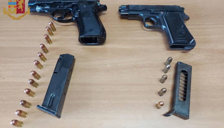 Il fiuto dei poliziotti ha permesso così di rinvenire, in possesso a 2 di loro, e successivamente sequestrare, 2 pistole, di cui una con matricola abrasa e 2 caricatori con complessivi 17 colpi.