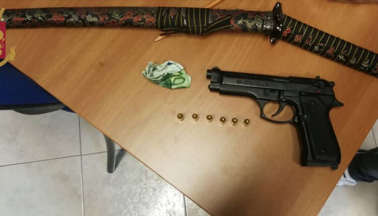 A seguito di perquisizione domiciliare sono stati rinvenuti 6 munizioni per arma comune da sparo 9×21, la replica di una beretta 92 FS priva di tappo rosso e una spada Katana.