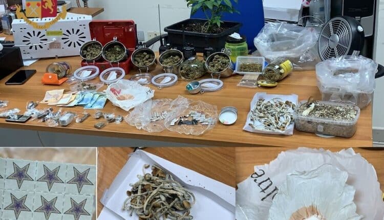Taranto, una mirata indagine antidroga ha permesso al personale della Squadra Mobile di avanzare fondati sospetti nei confronti di un 27enne residente a Statte che aveva messo in piedi una fiorente attività di spaccio di droghe sintetiche, tra le quali ecstasy, chetamina e rari funghi allucinogeni coltivati in casa.
