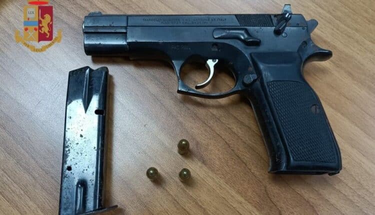 La successiva perquisizione nel suo appartamento non ha inizialmente dato i risultati sperati. Controllando successivamente un piccolo terrazzo sottostante, che come accertato era nella piena disponibilità del giovane, i poliziotti hanno recuperato una pistola semiautomatica calibro 9×21 marca “Tanfoglio”, completa di matricola e quattro cartucce marca G.F.L., calibro 9×19 parabellum.
