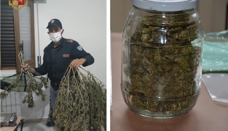 Durante il controllo, gli agenti hanno scoperto una stanza adibita a laboratorio per la lavorazione ed il confezionamento della marijuana ed hanno recuperato più di un kilo di questa sostanza stupefacente, oltre a tutto il materiale necessario per il suo confezionamento in dosi.