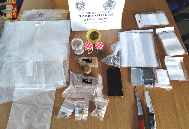 Dopo la perquisizione sul luogo del lavoro, ove l’uomo si trovava, gli agenti hanno rinvenuto nell’auto del trentaquattrenne una ventina di grammi di hashish. È casa dell’uomo che gli agenti hanno operato il rinvenimento più consistente. In un mobile della mansarda, infatti, i poliziotti hanno rinvenuto 210 grammi di hashish e 25 di marijuana, oltre al necessario per il confezionamento delle dosi. Gli agenti hanno anche recuperato conversazioni di messaggistica riconducibili all’attività di spaccio del trentacinquenne.