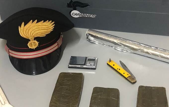 In particolare, avendo documentato un insolito andirivieni di persone, note come assuntori di droga, presso un condominio, i Carabinieri hanno deciso di svolgere controlli più approfonditi. Guidati dal fiuto del pastore tedesco Akim, gli operanti hanno svolto una perquisizione in un appartamento in cui vive un nucleo familiare composto da 4 persone. Nel corso delle attività, sono stati rinvenuti circa 340 gr. di hashish suddivisi in tre panetti, un bilancino di precisione, un coltello a serramanico con la lama intrisa di hashish e altro materiale utile al confezionamento delle dosi.
