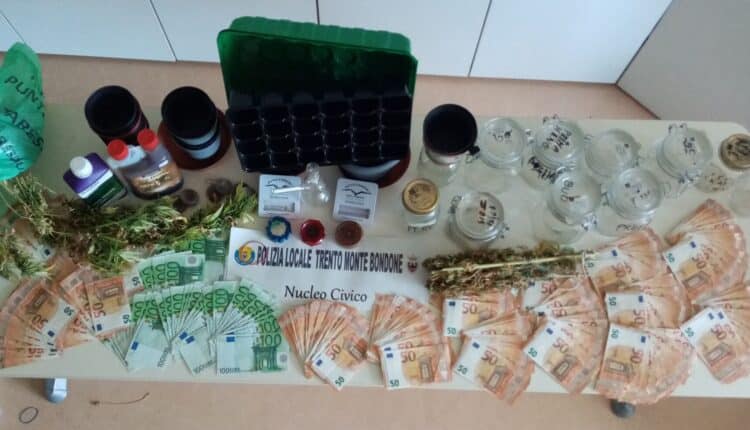 Gli agenti del Nucleo civico sradicavano l’ultima pianta presente, del peso di oltre 300 grammi, che veniva sottoposta a sequestro e successivamente effettuavano la perquisizione dell’appartamento del soggetto, dove venivano rinvenuti due ciuffi di sostanza stupefacente tipo marijuana ed uno stelo con alcune infiorescenze appesi per l’essiccazione, per un peso di ulteriori 60 grammi, oltre ad una decina di bustine in nylon ed alcuni vasi in vetro contenenti altri 10 grammi di stupefacente già essiccato. Si verificava anche la presenza di materiale per la coltivazione della marijuana ed un vero e proprio “stenditoio” per l’essiccazione delle piante, oltre a trovare un bilancino di precisione e due confezioni di semi di Cannabis. Nel locale venivano inoltre trovati circa 20.000 euro in banconote di diverso taglio, che l’uomo dichiarava di aver prelevato dal proprio conto corrente e custodito in casa per scopi non meglio precisati.