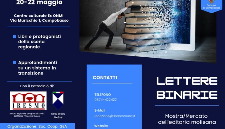 Da venerdì 20 a domenica 22 maggio, nella struttura dell’ex ONMI di via Muricchio a Campobasso, avrà luogo la prima edizione di “Lettere Binarie”, una mostra mercato dell’editoria molisana dedicata all’opera e alla figura del bibliografo e storiografo Giorgio Palmieri.