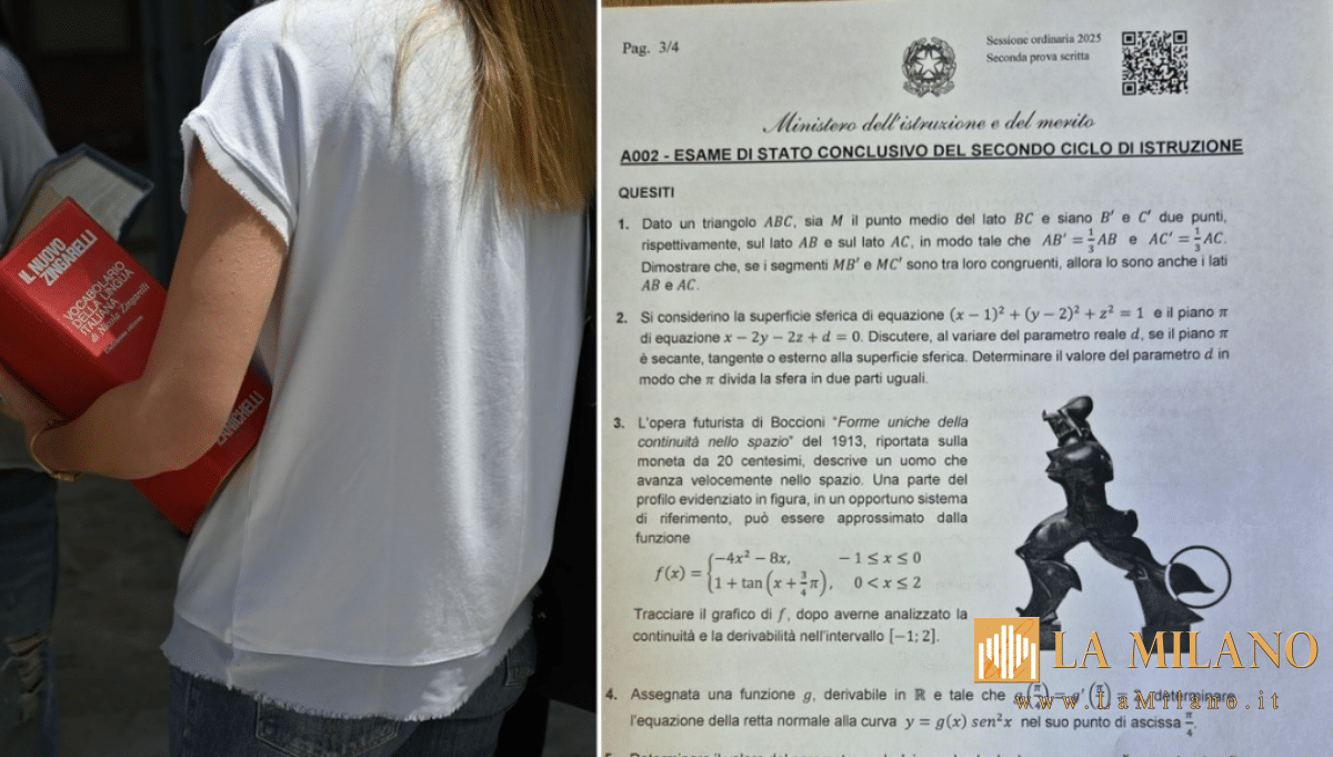 È iniziata questa mattina alle 8:30 la seconda prova scritta dell’Esame di Stato 2025, rivolta a 524.415 candidati tra interni ed esterni. In questa fase, ogni indirizzo scolastico affronta una prova specifica di competenza disciplinare: al Liceo Classico un brano di Cicerone sull’amicizia tratto dal dialogo Laelius de amicitia, mentre al Liceo Scientifico lo scritto verte su funzioni matematiche arricchite da citazioni di Cartesio e Platone. Chi sceglie l’Artistico si trova di fronte a un tema ispirato a La cura di Battiato, mentre i tecnici si confrontano su questioni pratiche, come l’uso dell’intelligenza artificiale per combattere le fake news.