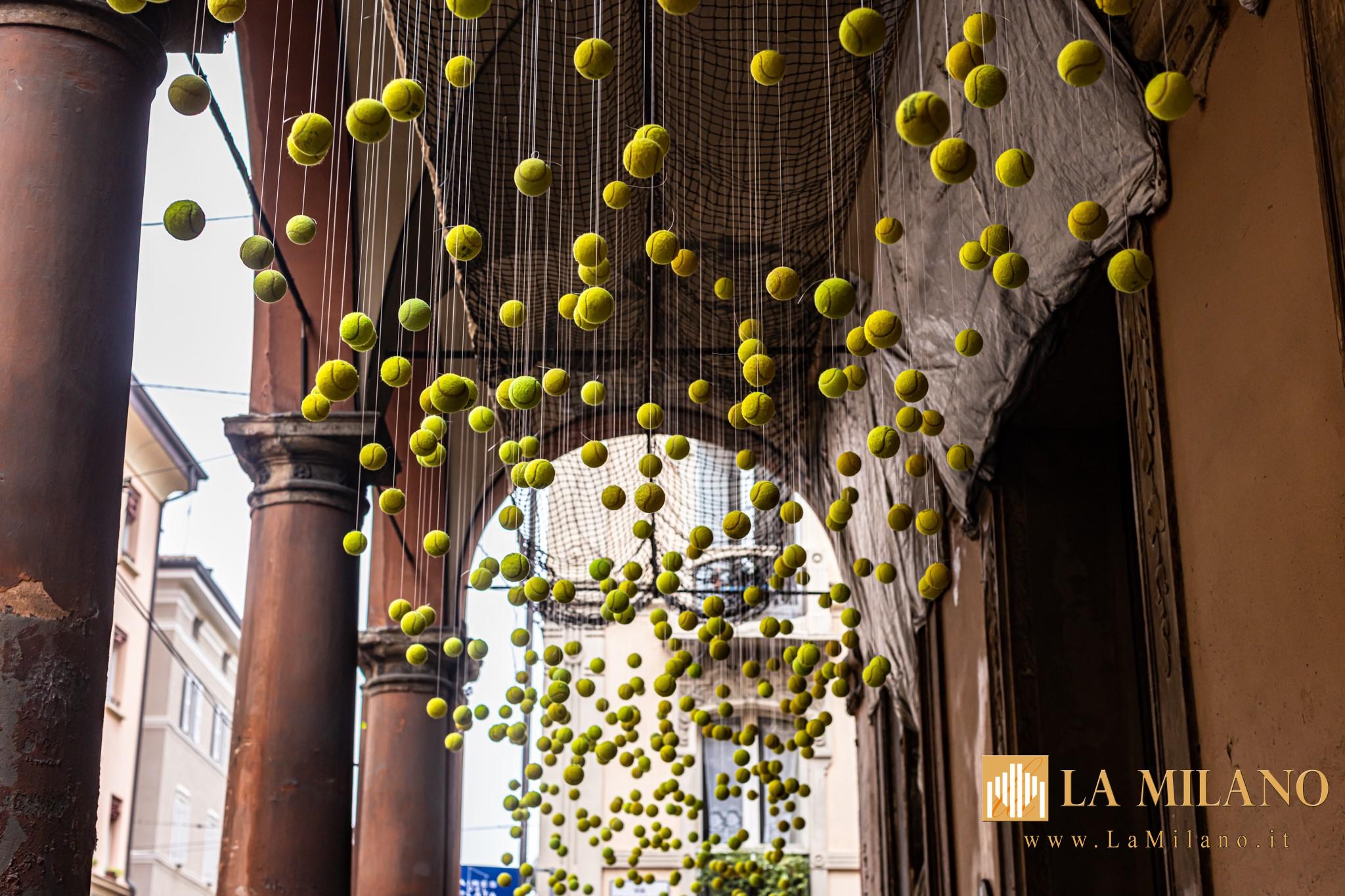 Coppa Davis: a Bologna spuntano 500 palline da tennis in via San Felice. L’installazione “Second Serve” del collettivo MAAP.