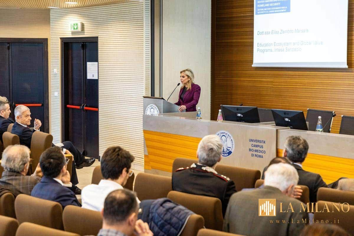 Le nuove minacce espongono in particolare agli attacchi le grandi istituzioni di interesse nazionale, come gli istituti bancari. A descrivere l’esperienza di Intesa Sanpaolo, che dal 2022 supporta il master homeland security Ucbm, l’ex generale dei Carabinieri Antonio De Vita, chief security officer del gruppo bancario, Francesco Zio, Corporate and Physical Security di Intesa Sanpaolo e Elisa Zambito Marsala, head of education ecosystem and global value programs Intesa Sanpaolo che ha sottolineato: “Intesa Sanpaolo sostiene dal 2022 il master in homeland security, valorizzando una partnership strategica con l’università Campus Bio-Medico di Roma, eccellenza riconosciuta a livello internazionale. In un contesto geopolitico e tecnologico sempre più complesso, la sicurezza rappresenta un fattore abilitante fondamentale e lo sviluppo di competenze qualificate è essenziale per rafforzare la resilienza e la competitività delle imprese. Investire nell’alta formazione significa contribuire in modo concreto alla crescita di professionalità in grado di affrontare le sfide globali presenti e future”, ha aggiunto.