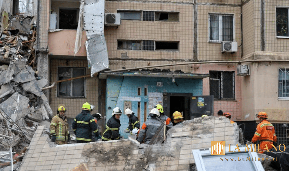 Il governatore regionale Oleh Kiper ha reso noto che tra i feriti ci sono due bambini di 3 e 7 anni, ricoverati in ospedale dopo aver subito ustioni e trauma da caduta. Le immagini diffuse dalle autorità mostrano vigili del fuoco e residenti che evacuano le famiglie dal palazzo, mentre colonne di fumo si alzano dall’edificio colpito.