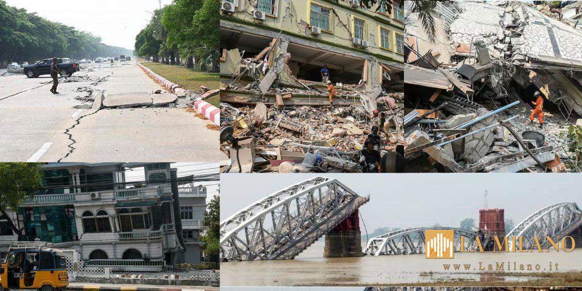Oltre 3.000 edifici sono stati distrutti o gravemente danneggiati, così come 30 strade e 7 ponti, paralizzando le infrastrutture del paese. Gli aeroporti di Naypyidaw e Mandalay sono stati chiusi, complicando ulteriormente le operazioni di soccorso e l’invio di aiuti internazionali.