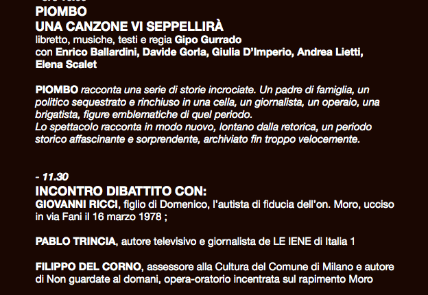A Milano PIOMBO il Musical su “gli anni di piombo”