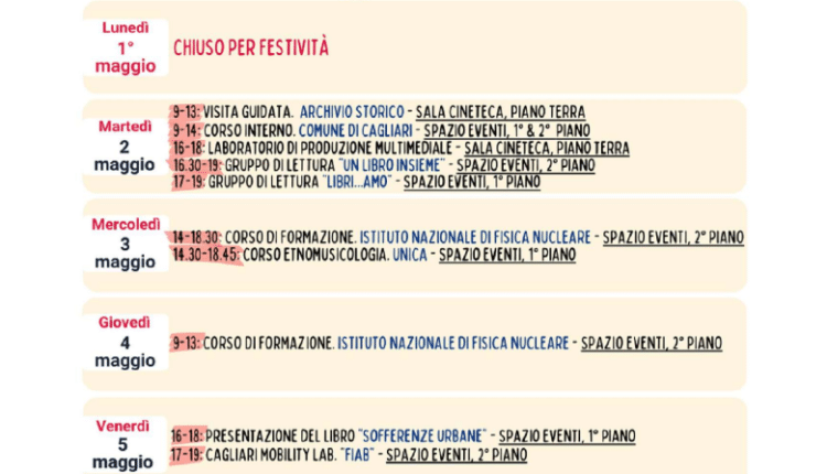 Cagliari, annunciati gli eventi alla Mediateca del Mediterraneo dall’1 al 7 maggio