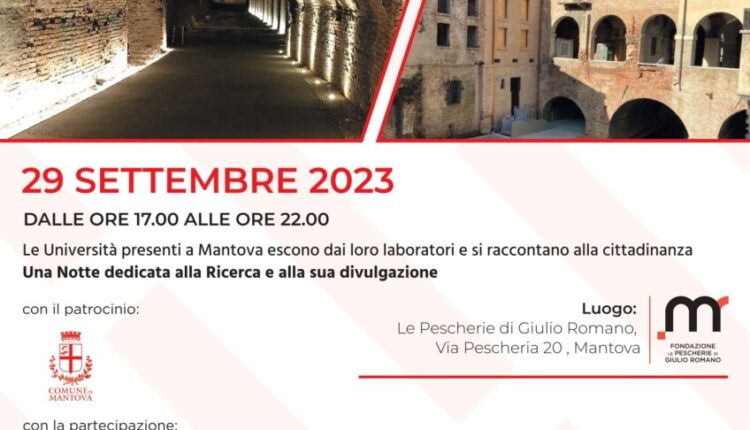 Le Università presenti a Mantova “escono” dai loro laboratori e si raccontano alla cittadinanza per una serata dedicata alla ricerca e alla sua divulgazione. L’iniziativa si svolgerà venerdì 29 settembre, dalle 17 alle 22, nelle suggestive Logge di Giulio Romano, in via Pescheria.