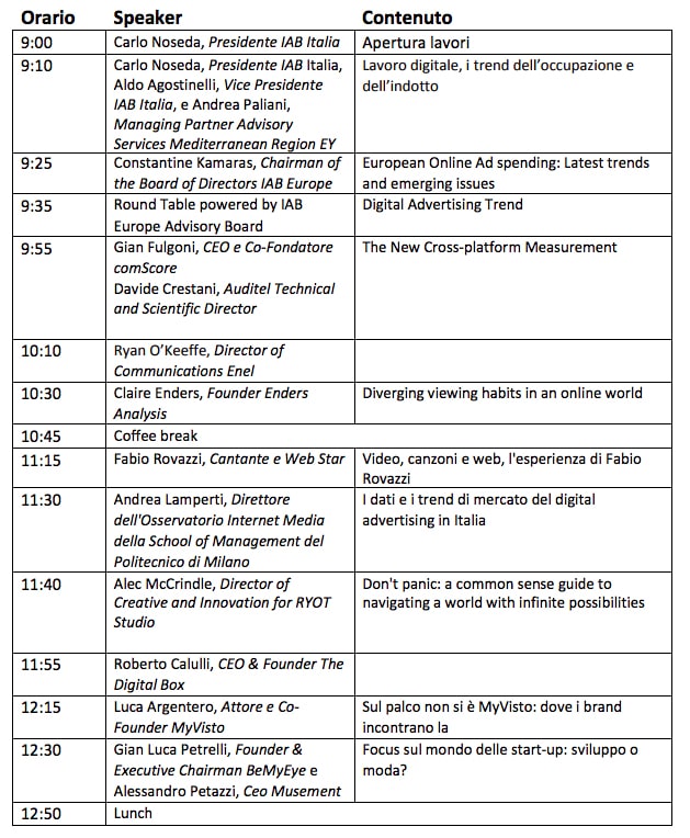 Ecco nel dettaglio l’Agenda Convegno Istituzionale (sala Silver) IAB Forum 2017 moderata da Marco Montemagno