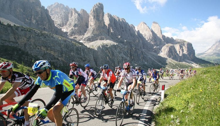 la carica dei 370 ciclisti milanesi alla Maratona delle Dolomiti