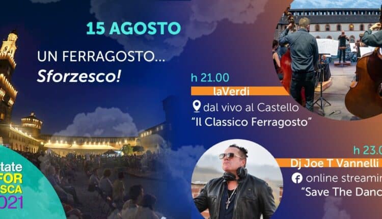 Il programma della serata di Ferragosto è stato pensato per essere trasversale e inclusivo e propone quindi due eventi completamente differenti musicalmente e diversamente fruibili dal pubblico: alle 21, il concerto “Il Classico Ferragosto” dell’Orchestra Sinfonica di Milano “Giuseppe Verdi” che eseguirà dal vivo musiche di W.A. Mozart e L.V. Beethoven, mentre a partire dalle 23, sul canale Facebook del dj di fama internazionale Joe T Vannelli verrà trasmesso in streaming il dj set “Save the dance”, registrato a porte chiuse e senza pubblico sul palco di “Estate Sforzesca” lo scorso 2 agosto. La performance, a cura di Sound Faktory e inserita nel “Joe T Vannelli Live on Tour”, è parte del progetto nato nell’aprile 2020, in pieno lockdown, per valorizzare il territorio italiano e le sue bellezze nel mondo attraverso la musica dance/house e, al tempo stesso, per lanciare un messaggio, “Save the dance” appunto, a sostegno del settore che è stato fortemente provato dalla crisi sanitaria. Il progetto ha all’attivo 55 tappe in Italia, tra castelli, rocche, musei, piazze, riserve naturali e 7 siti Patrimonio dell’Unesco. È il dj set streaming più visto in Italia e vanta un pubblico eterogeneo e internazionale.