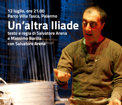 Nell’ambito di Parole al vento, la stagione estiva del Teatro Biondo di Palermo, in svolgimento nel Parco Villa Tasca, con la direzione di Pamela Villoresi, mercoledì 12 luglio alle ore 21.00, andrà in scena la nuova produzione di Mana Chuma Teatro, con protagonista Salvatore Arena che racconterà “Un’altra Iliade”, ispirata a quella omerica.