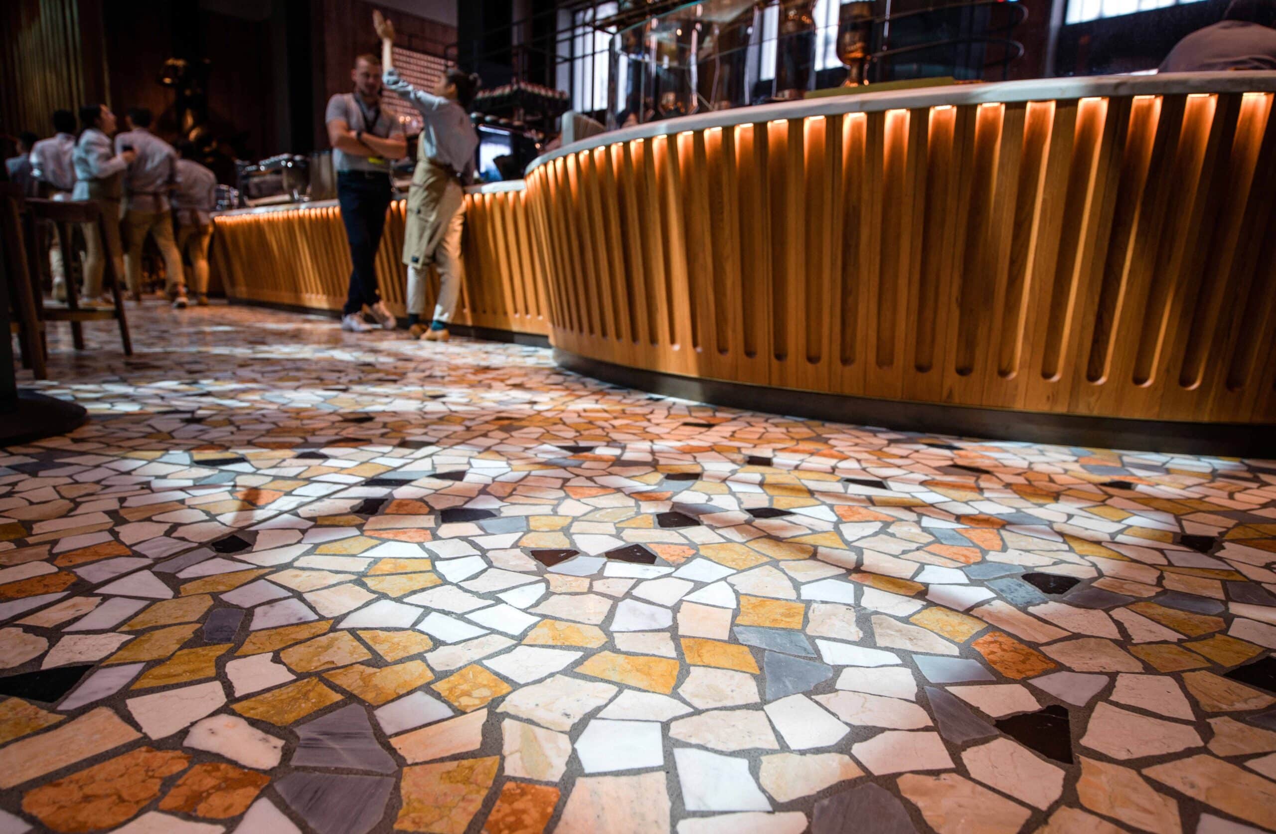 “Abbiamo trascorso l’ultimo anno vivendo e respirando la citta di Milano, lavorando a stretto contatto con decine di artigiani locali per realizzare la nostra più affascinante esperienza retail che coinvolgerà tutti I sensi dei nostri clienti: vista, udito, tatto, olfatto e, ovviamente, il gusto”, afferma Liz Muller, chief design officer, Starbucks. “Dal pavimento palladiana cesellato a mano, al tabellone verde creato dall’artigiano italiano Solari, ogni dettaglio all’interno della Roastery non è casuale ed è pensato per offrire momenti di scoperta e trasparenza”.