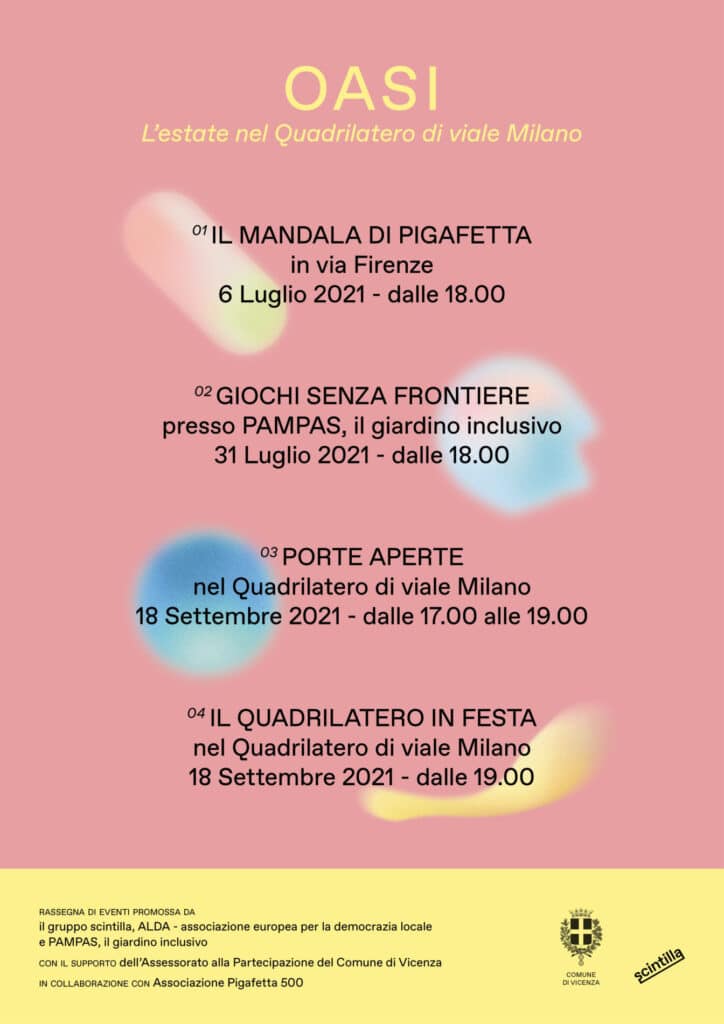La rassegna è organizzata dal Gruppo Scintilla, in collaborazione con l’associazione culturale Pigafetta 500 e con il supporto dell’assessorato alla partecipazione del Comune di Vicenza. Il progetto rientra infatti nel bando “Ripartiamo: estate nei quartieri 2021”.