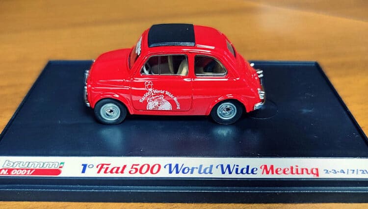Il modellino, realizzato dalla ditta Brumm, è stato consegnato al sindaco da Mauro Panzolato, fiduciario per Vicenza del Fiat 500 Club Italia, a nome anche di Stefano Soprana che rappresenta invece l’associazione Pigafetta 500 che si è occupata dell’organizzazione dell’evento.