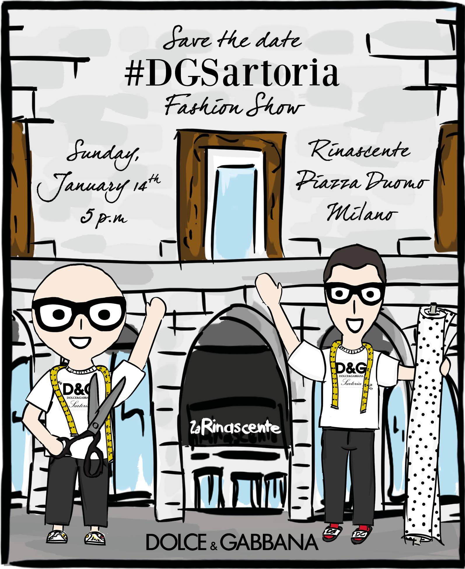 Dolce&Gabbana portano una sfilata in Rinascente. Lo show denominato #DGSartoria avrà luogo domenica 14 gennaio a partire dalle ore 17.00 presso la Rinascente di Piazza Duomo. Si inizierà nella boutique Uomo Dolce&Gabbana situata al primo piano, per continuare nel piano mezzanino dove trovano posto le borse e la piccola pelletteria Donna insieme agli occhiali da sole uomo e donna, e concludersi al pian terreno presso l’area Dolce&Gabbana Beauty. La sfilata è aperta al pubblico.