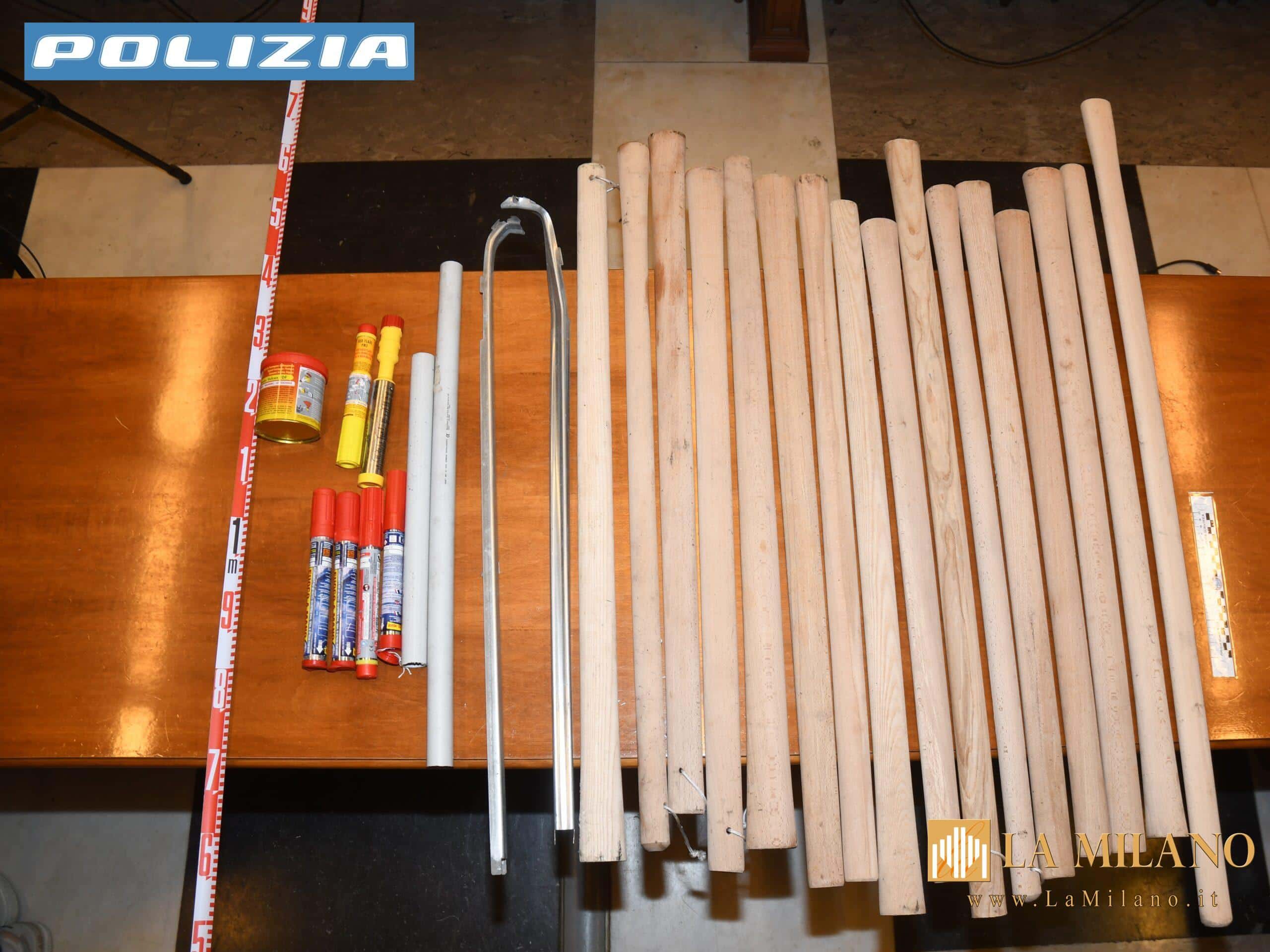 All’esito, un’auto della Questura di colori di serie e col personale a bordo ha riportato lo sfondamento del parabrezza ed ammaccature sul cofano, mentre un’auto con colori di istituto della Polizia Locale di Genova, con personale impiegato nei servizi di viabilità, è stata danneggiata con sfondamento del lunotto posteriore. Sequestrati 16 bastoni di legno del tipo mazze di piccone, 2 spranghe di metallo ricurve all’estremità, 2 aste rigide in plastica dura, 1 boetta, 6 torce inesplose e capi di abbigliamento.