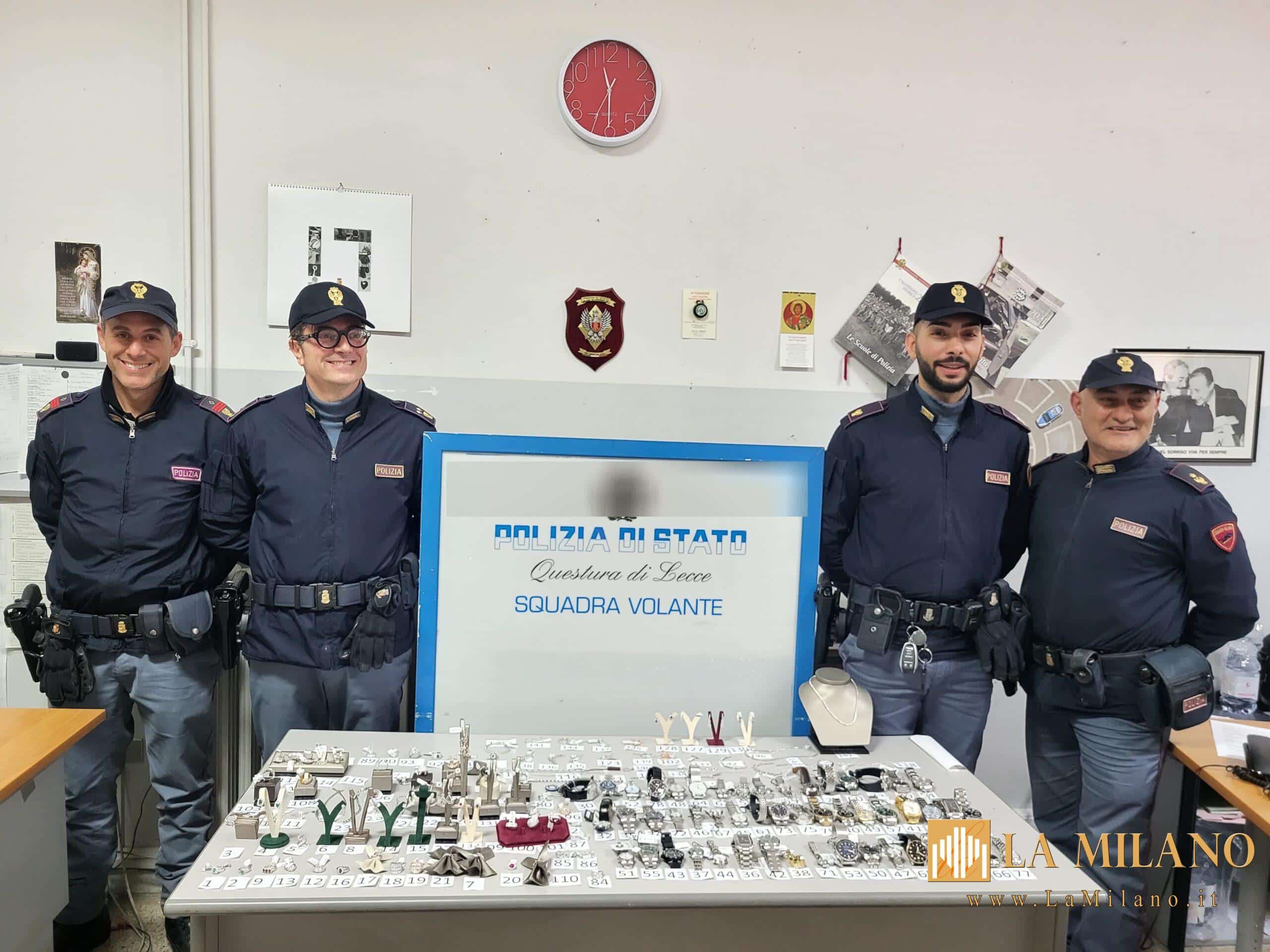 Lecce, maxi furto in gioielleria sventato dalla Polizia: arrestato un ladro, refurtiva da 600mila euro recuperata.