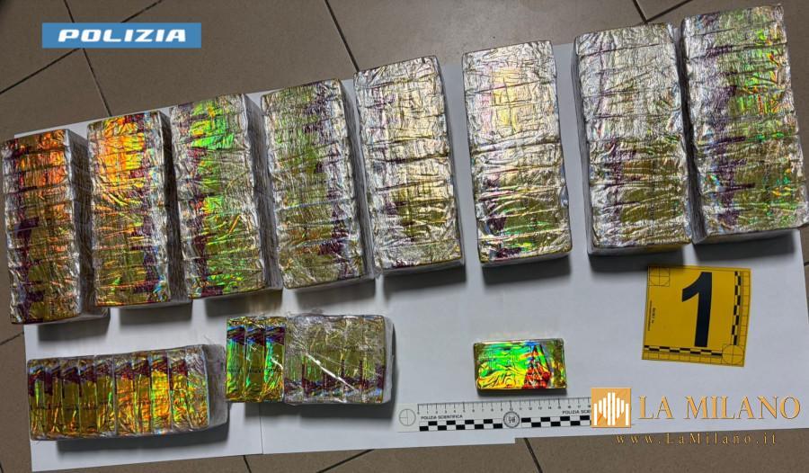 Fermati un 39enne e un 36enne: nella Mercedes trovati 199 panetti di hashish. Sequestrati anche cocaina, contanti e materiale per il confezionamento