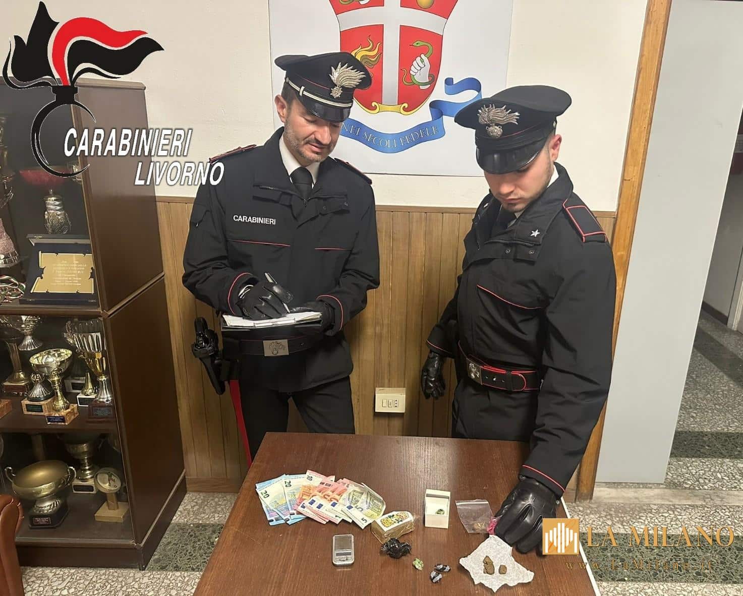 I militari della Compagnia Carabinieri di Cecina sorprendono un uomo e una donna nella cessione di sostanza stupefacente e sequestrano 90 grammi di hashish, denaro e materiale per lo spaccio