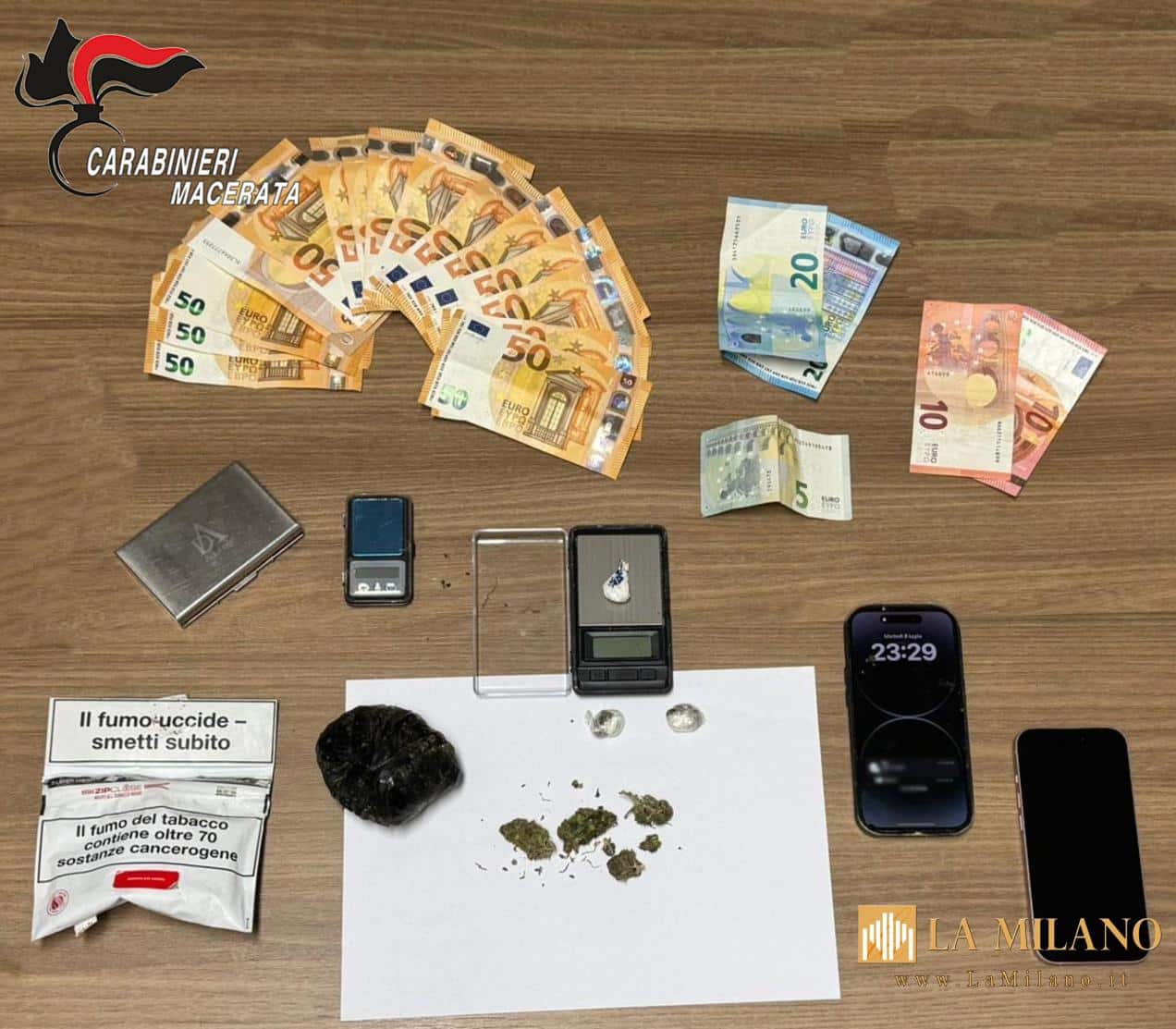 Operazione dei Carabinieri di Matelica e Castelraimondo: sequestrati stupefacenti, denaro contante e materiale per il confezionamento. Tre persone denunciate, due gli arresti