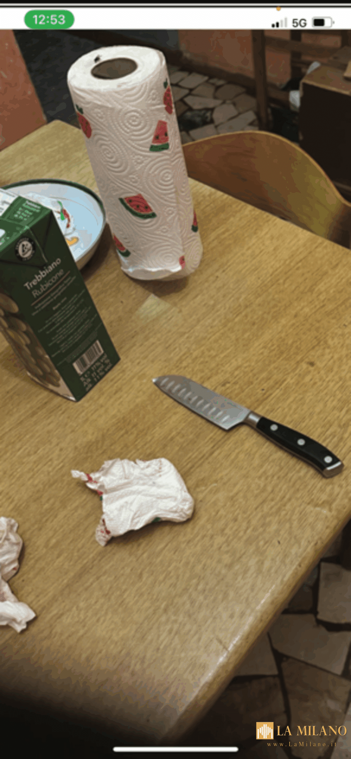 Nell’appartamento occupato dai 2 veniva trovato un coltello da cucina, della lunghezza di 23 cm, sul tavolo del soggiorno, esattamente vicino il divano dove poco prima era stata attinta la vittima. Altri 2 coltelli, di 21 cm ciascuno, venivano trovati in cucina.