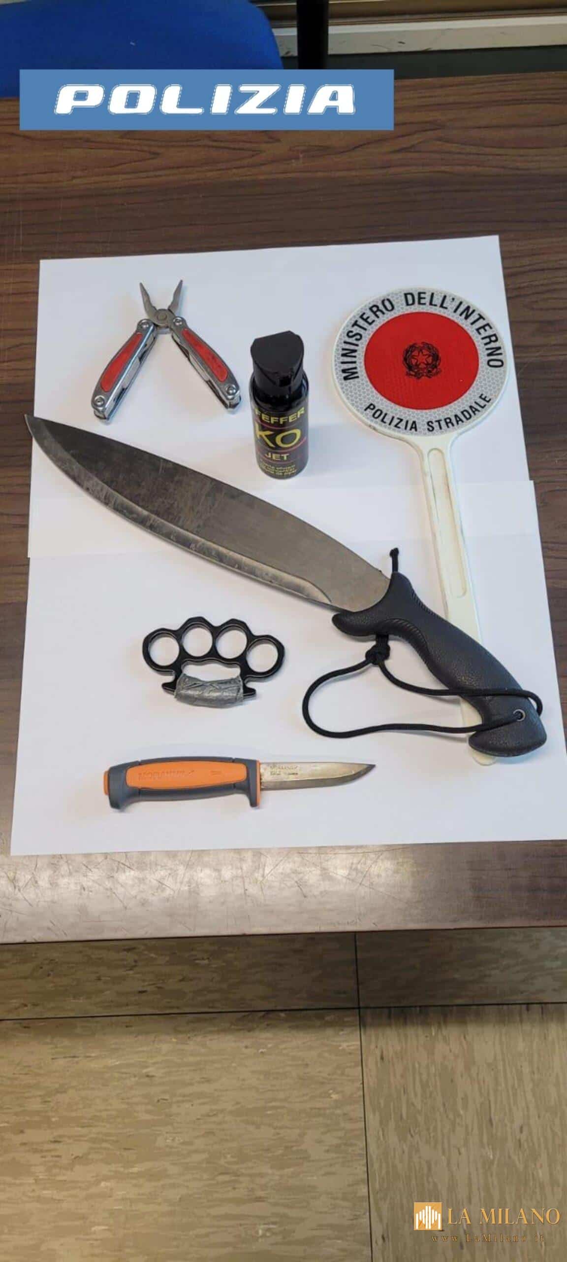 Durante un controllo stradale, la Polizia di Stato ha trovato nell’auto un machete, un tirapugni, uno spray urticante illegale e un coltello multiuso. L’uomo è stato denunciato