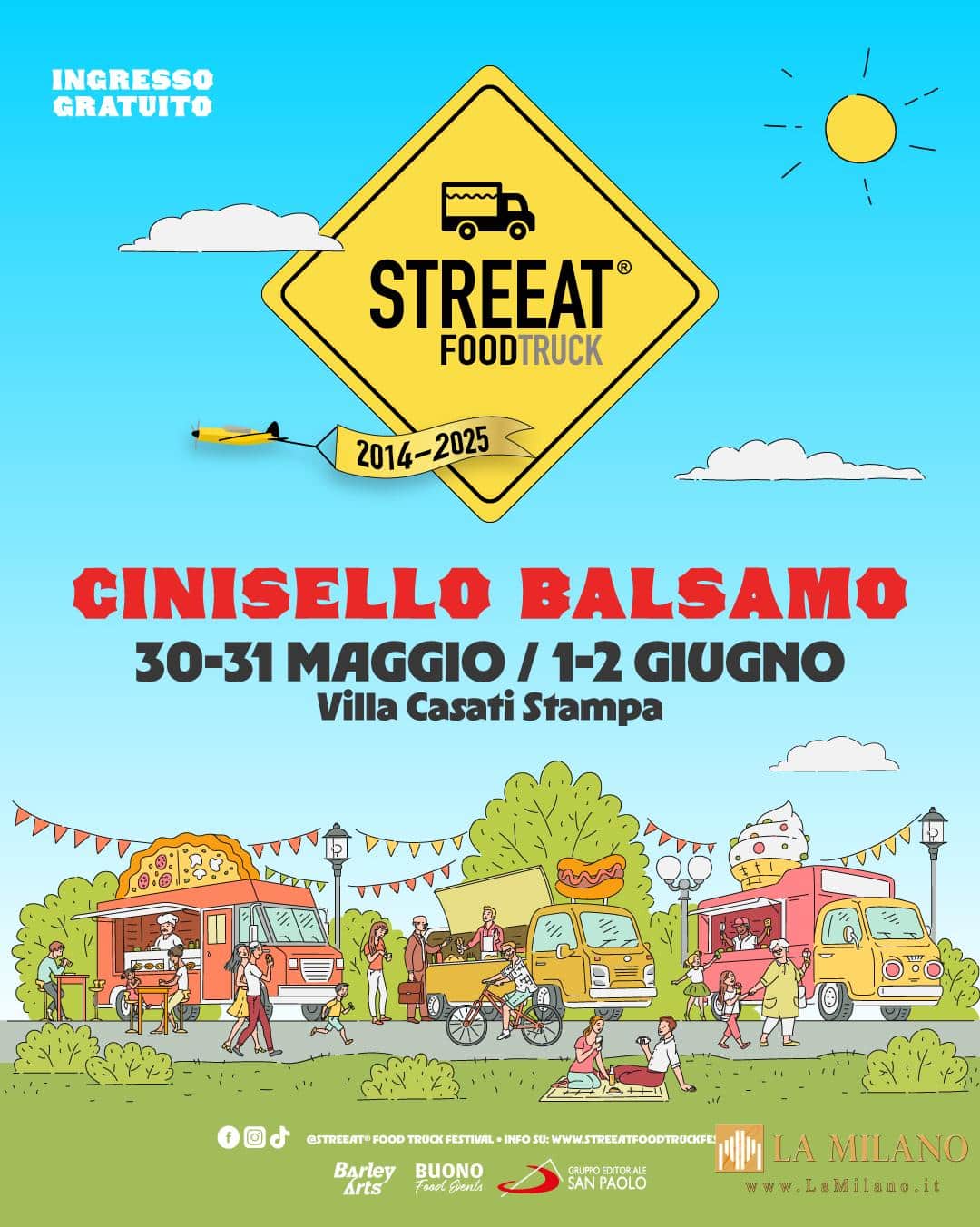 STREEAT® Food Truck Festival, il primo e l’originale festival con i migliori Cibi di Strada d’Italia, torna in Lombardia: le cucine mobili si accenderanno a Villa Casati Stampa a Cinisello Balsamo da Venerdì 30 Maggio a Lunedì 2 Giugno 2025, come sempre ad ingresso gratuito.