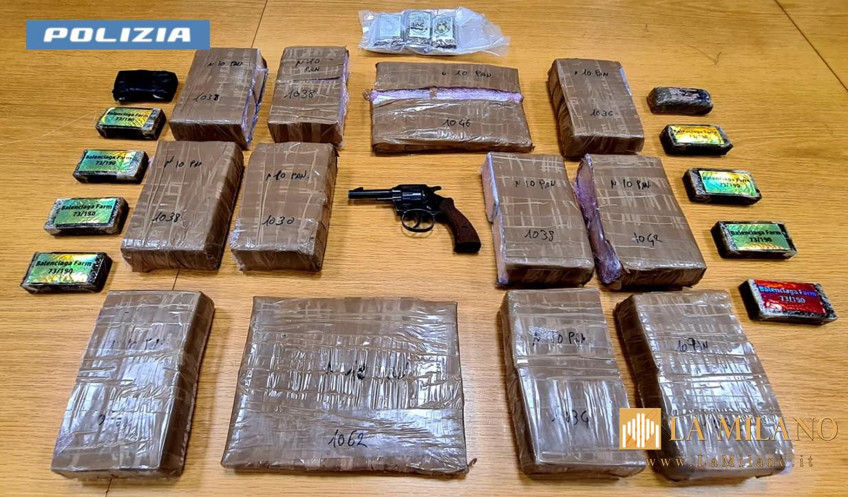Cologno Monzese, la Polizia scopre in un appartamento 15 chili di hashish e una pistola. Arrestati due fratelli peruviani durante un’operazione della Squadra Mobile di Milano.