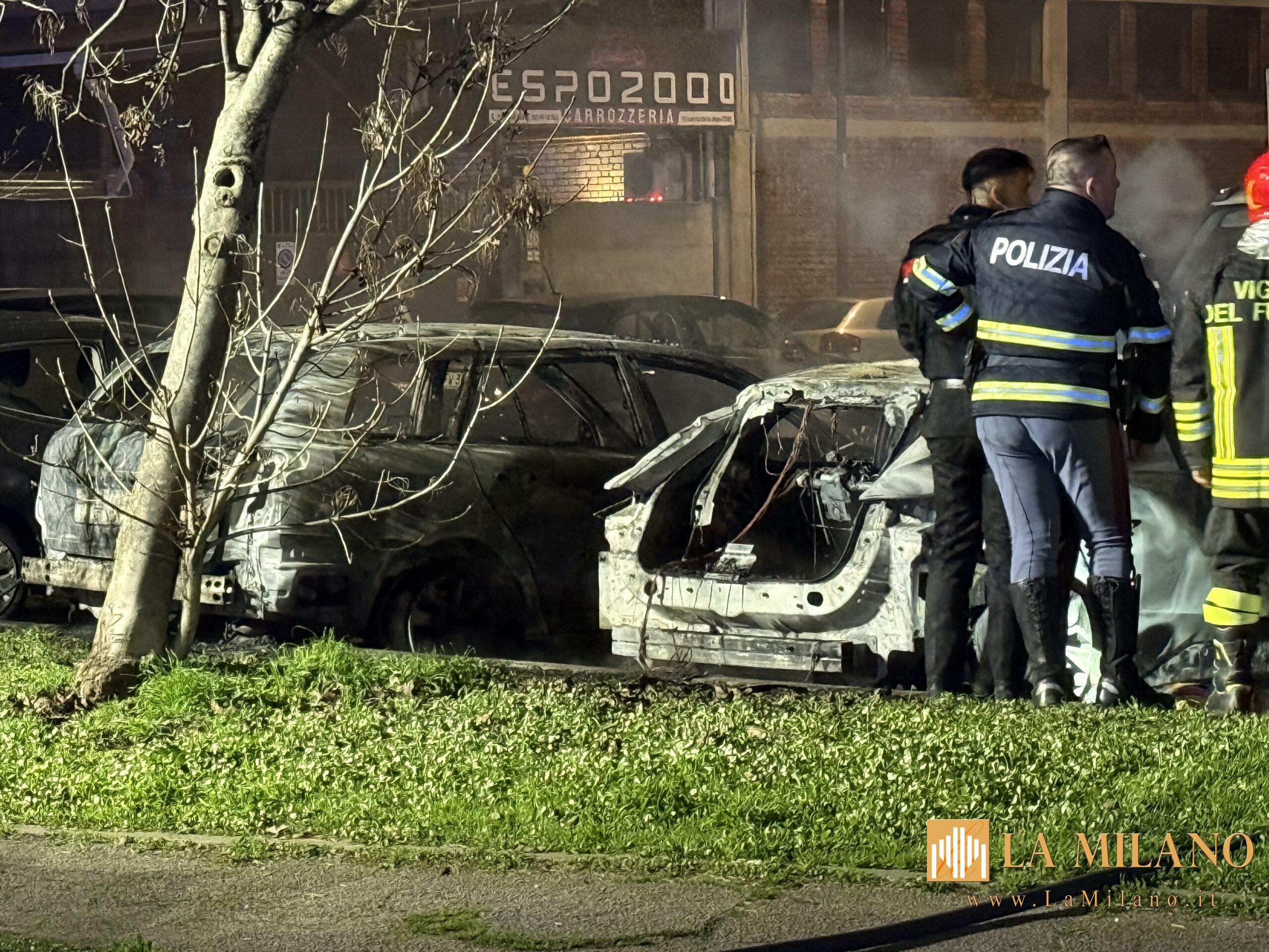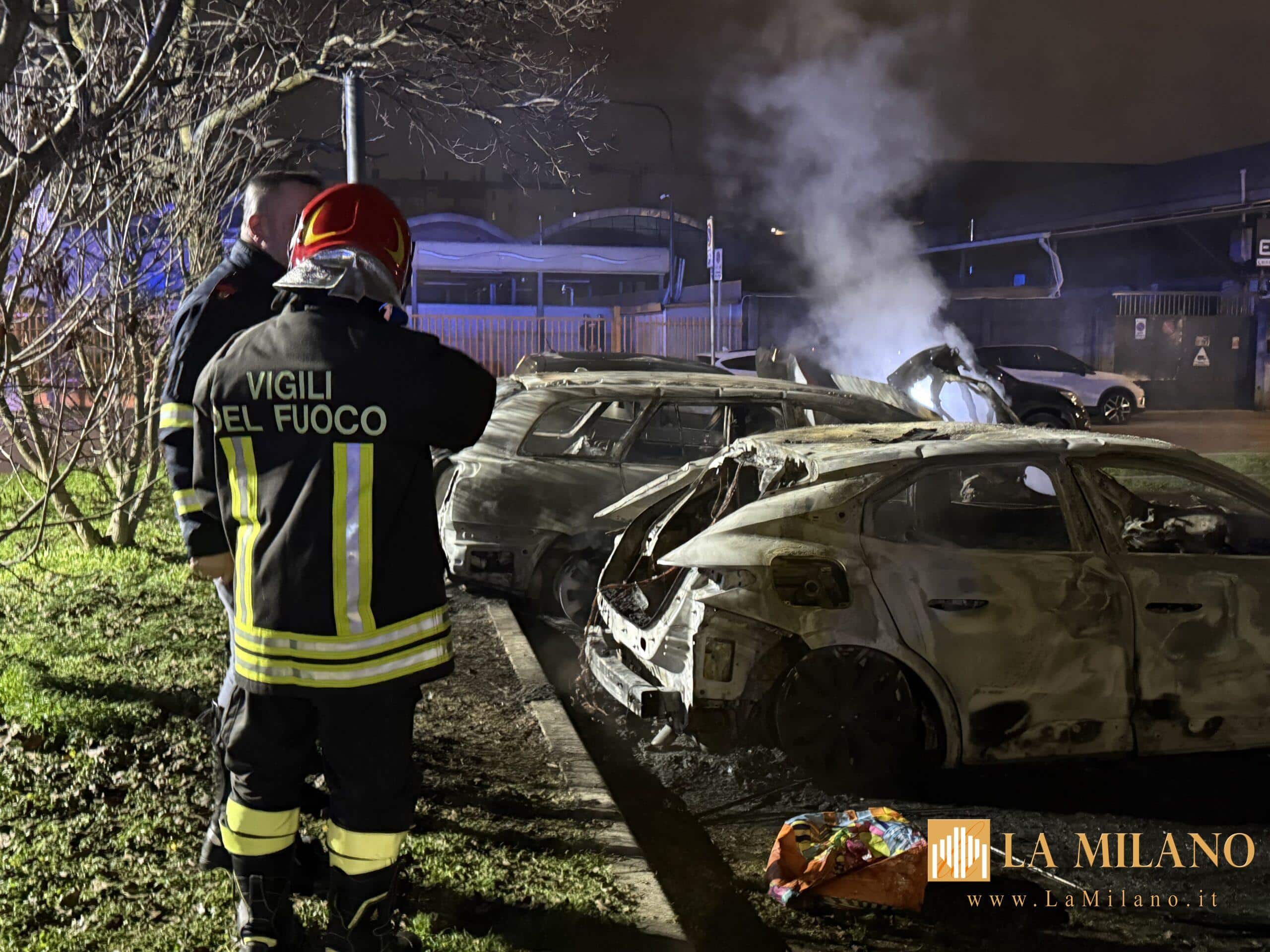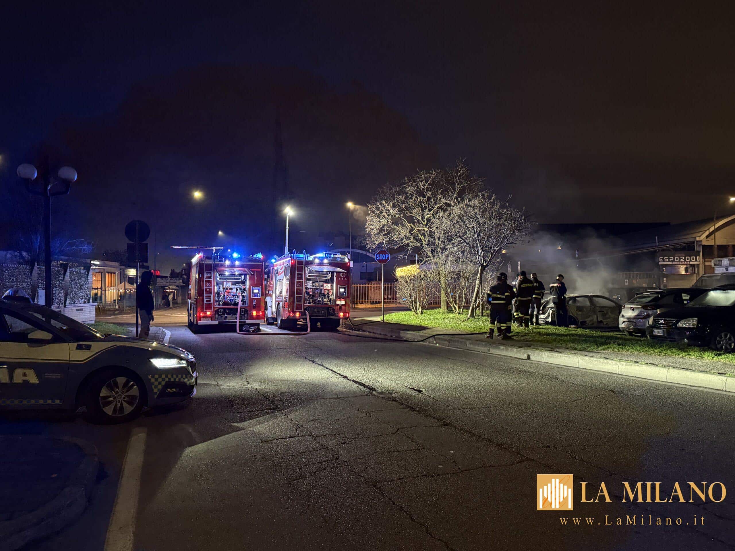 Cologno Monzese, auto in fiamme nella notte: incendio distrugge tre vetture in un parcheggio di via Mascagni.