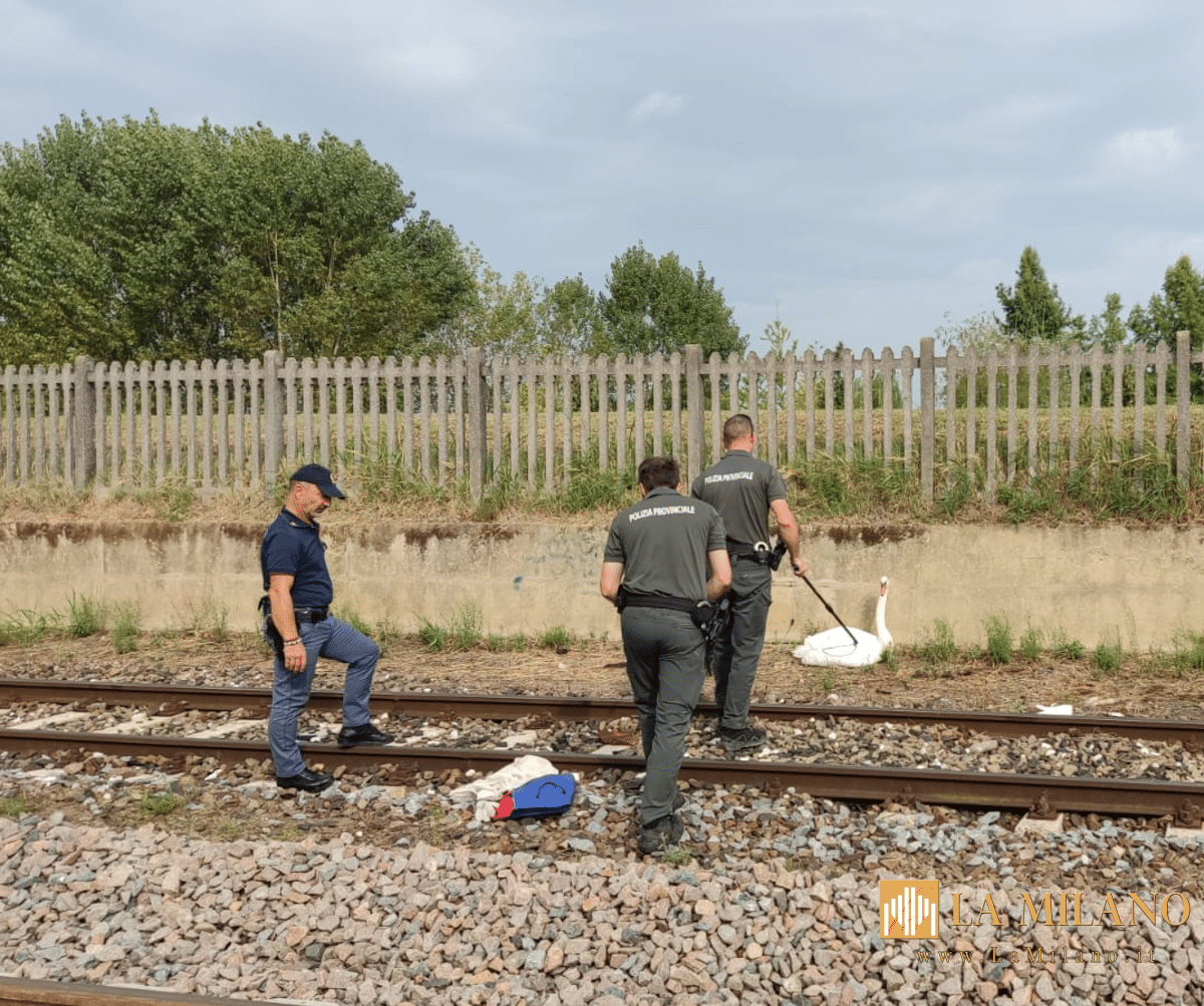 Vista la scena in diretta, gli Agenti della Polizia Ferroviaria hanno immediatamente segnalato il fatto al Dirigente di Movimento, accertando che nessun convoglio era previsto in transito sui binari, lasciando così margine di intervento. I poliziotti sono riusciti a condurre il cigno, con le cautele del caso, fino a un’area verde adiacente ai binari.