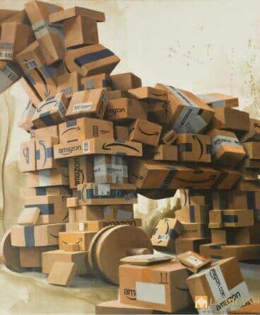 Attraverso la sua grande abilità tecnica, Afran disvela ciò che si occulta dietro al nuovo consumismo di massa che tocca non solo il consumo/possesso dell’oggetto fisico, ma si palesa nella nostra relazione con le app e le svariate piattaforme di streaming. Simboli e segni del nostro essere social si intrecciano così a figure archetipiche, in una fiera colorata che seduce e cattura nella rete di una realtà immateriale che è monopolio della nostra contemporaneità.