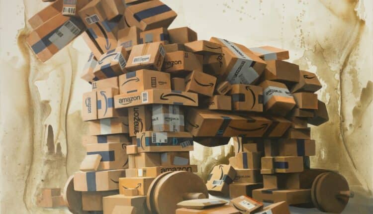 In mostra una ventina tra quadri e sculture che spaziano dal collage all’acrilico su tela e cartone, dalla bomboletta spray al denim, per terminare in una grande scenografia costruita con cartoni da spedizione.