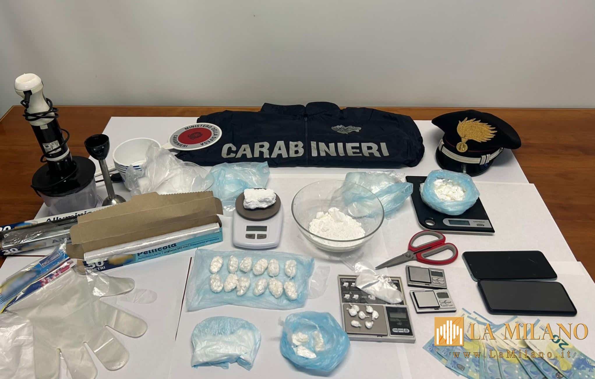 Nel cruscotto dell’auto, i militari hanno rinvenuto 12 sacchetti contenenti complessivamente oltre 160 dosi di cocaina, per un peso totale di circa 60 grammi. Il controllo è stato quindi esteso all’abitazione dell’uomo, situata non lontano dal luogo del controllo. All’interno dell’appartamento è stata scoperta una vera e propria centrale di confezionamento della droga: oltre 250 grammi di cocaina, strumenti per il taglio della sostanza, frullatori, bilancini di precisione e bustine pronte per l’imballaggio delle singole dosi.