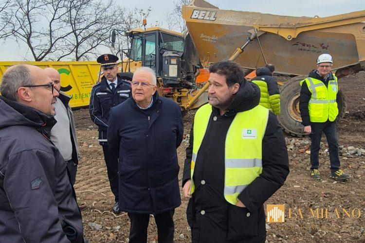 Il sopralluogo nel cosiddetto “sito orfano” Area Nova – Elfe – ex discarica Eca ha visto la presenza dell’assessore regionale all’Ambiente e Clima Giorgio Maione, insieme al sindaco di Vimodrone Dario Veneroni, per verificare lo stato di avanzamento dei lavori di risanamento ambientale.