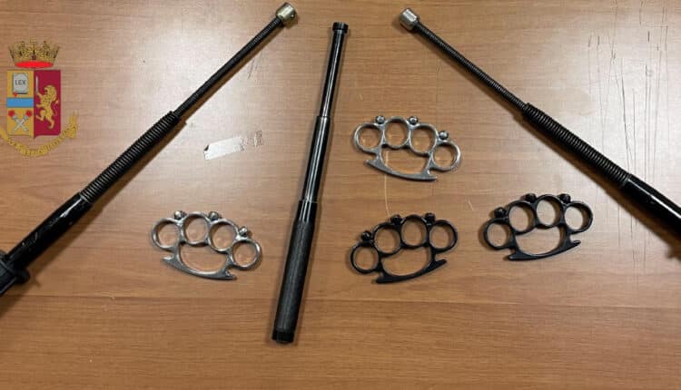 Gli operatori, con il supporto di una volante dell’Ufficio Prevenzione Generale, si sono recati presso il luogo dell’aggressione e, grazie alle descrizioni delle vittime, hanno riconosciuto e bloccato un gruppo di 7 giovani trovandoli in possesso di 4 tirapugni e 3 manganelli telescopici.