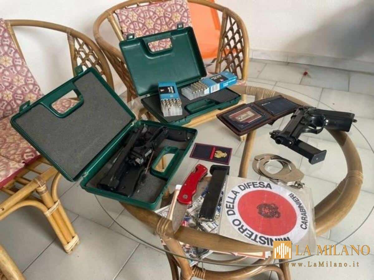 Il sessantenne, portatore di handicap in situazione di gravità, è stato inoltre trovato in possesso di una pistola a salve Beretta 92 FS priva di tappo rosso, con 2 caricatori e numerose cartucce a salve, oltre a oggetti e segni distintivi falsi da polizia: distintivi di qualifica, manette, paletta e lampeggiante.