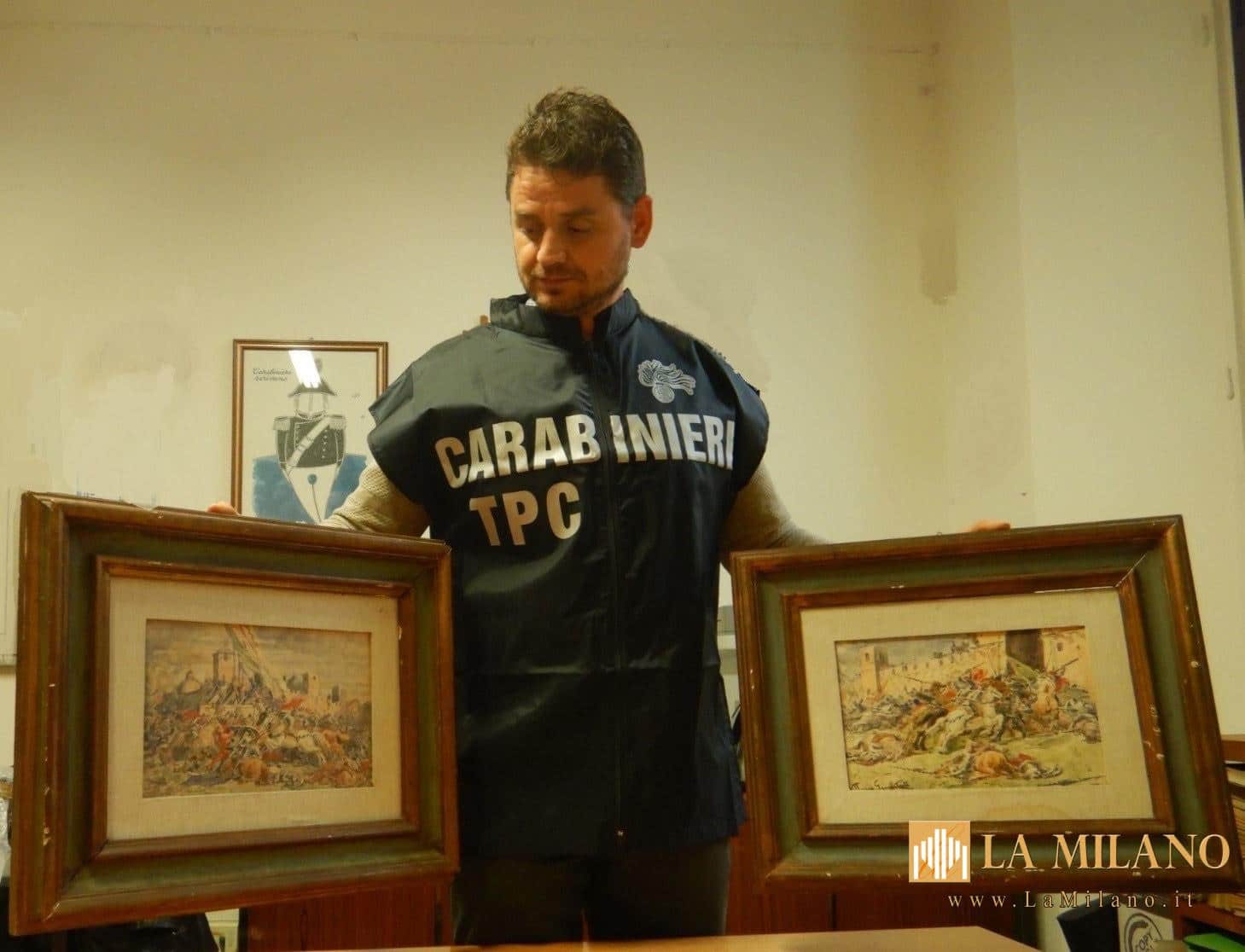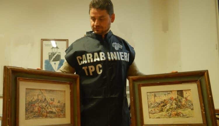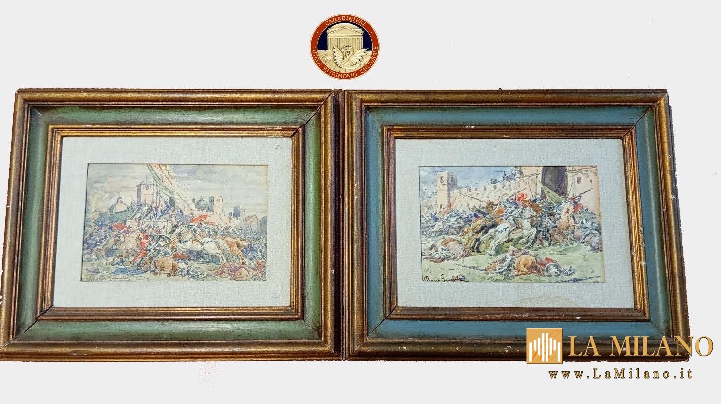 Due dipinti, realizzati con tecnica ad acquerello dall’artista Vittorio Giunti e raffiguranti scene di battaglie tra cavalieri, sono stati recuperati a Parma dai Carabinieri del Nucleo Tutela Patrimonio Culturale di L’Aquila, a distanza di sei anni dal furto avvenuto in provincia di Forlì-Cesena.