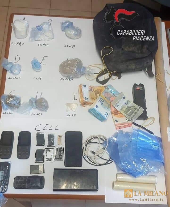 In località Costa Pelata i Carabinieri hanno recuperato uno zaino contenente oltre 400 grammi di droga, 5.800 euro in contanti e un taser. Sospetti legami con una rete di spaccio attiva nel Piacentino.