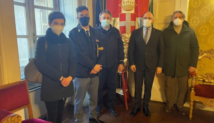 Asti, Ieri il Sindaco Maurizio Rasero ha ricevuto in Municipio, insieme alla dott.ssa Vittoria Rissone Vicario della Questura di Asti ed al Commissario Valerio Coluccio, i neo-pensionati Gianluigi Aseglio e Maurizio Beato per complimentarsi per il traguardo raggiunto e ringraziarli del lavoro svolto in tutti questi anni a servizio della comunità.