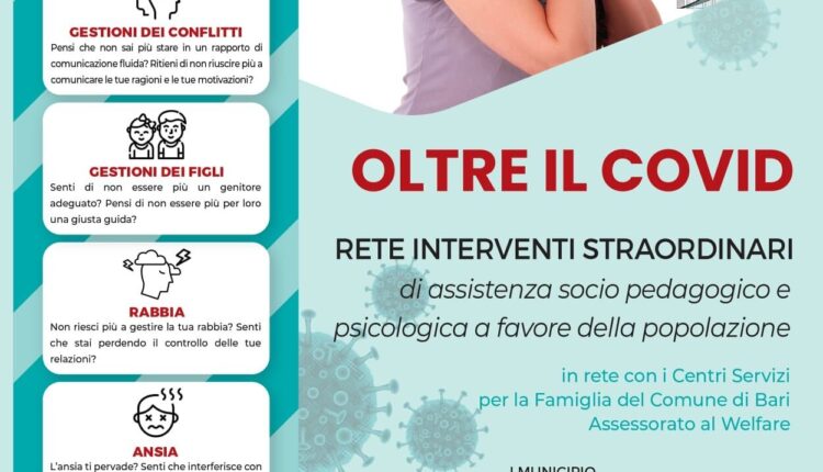 Bari, “Oltre il COVID”: al via il programma di sostegno psicologico del Comune
